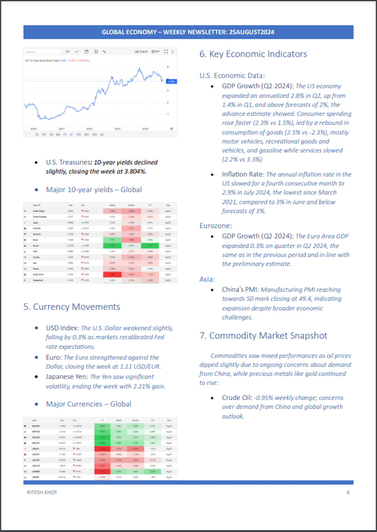 Global Economy - Weekly Newsletter 25Aug2024 #economy #globaleconomy #globalequityindex #commodities #globalcurrencies #globalbondindex